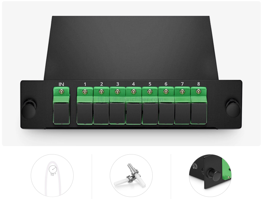 1×8 PLC 分路器采用紧凑型 LGX 盒式结构,标配 SC/APC 与 2.0 mm 单模尾纤,可在配线架与机柜中快速上架部署。兼容 G652D/G657A 单模光纤,具备低插入损耗与优异一致性;同时支持 LC/FC/ST 接口与 UPC/APC 抛光定制,覆盖 FTTH/FTTB、PON、数据中心与 CATV 等多种高密度场景。
