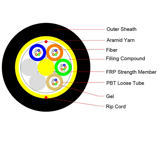 是的,电缆的结构包括水阻胶填充的松套管、用于抗拉支撑的芳纶纱强度成员,以及一层耐用的外护套,具有出色的抗紫外线、防潮、耐温变化和机械应力的能力。